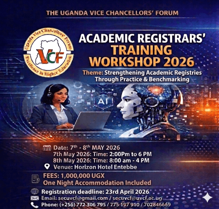 The University Vice Chancellors’ Forum (UVCF), constituted in 1997, was established by a dedicated group of Vice Chancellors and Heads of Institutions who recognized the value of having a united voice and sharing lessons on mutual concerns. UVCF enhances the sharing of knowledge, information, and practices, and advises the government on various policies to promote university education. Additionally, it publishes works and engages in activities aimed at promoting higher education in Uganda.